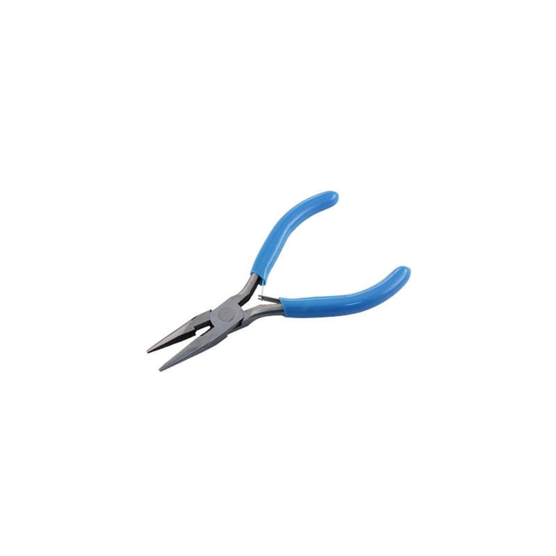 Il sert à atteindre des endroits où le pince plat n’atteint pas. C’est aussi un deux-en-un. Pointe plate mais plus étroite pour pouvoir ouvrir les anneaux et les fermer, resserrer les agrafes et ainsi de suite. Sur la surface sous une pièce de coupe pour pouvoir couper. Cela pince vous ne pouvez pas manquer non plus, car il est nécessaire lors de la manipulation de trous plus petits.