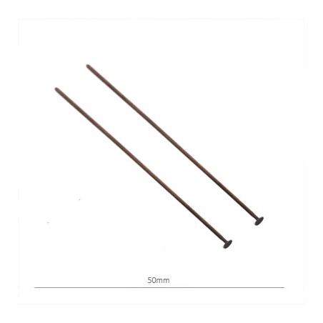 - Épingle avec butée plate en laiton de couleur cuivre. - La taille est de 50x0,8 millimètres. - Le prix est par sac et le sac comprend 50 unités.
