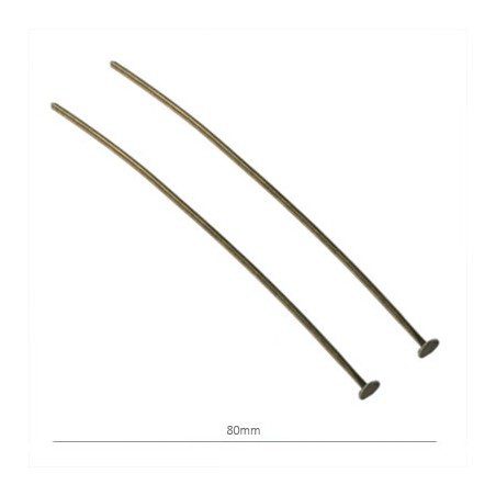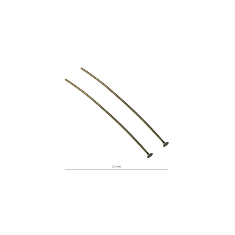 - Épingle avec butée plate en laiton de couleur or ancienne. - La taille est de 80 millimètres. - Le prix est par sac et le sac contient 4 unités.