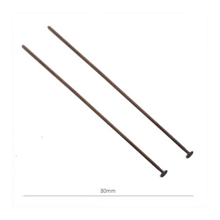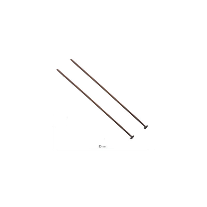 - Épingle avec butée plate en laiton de couleur cuivre. - La taille est de 80 millimètres. - Le prix est par sac et le sac contient 4 unités.