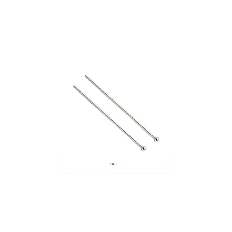 - Épingle avec boule de laiton de couleur argentée. - La taille est de 50 millimètres. - Le prix est par sac et le sac contient 25 unités.