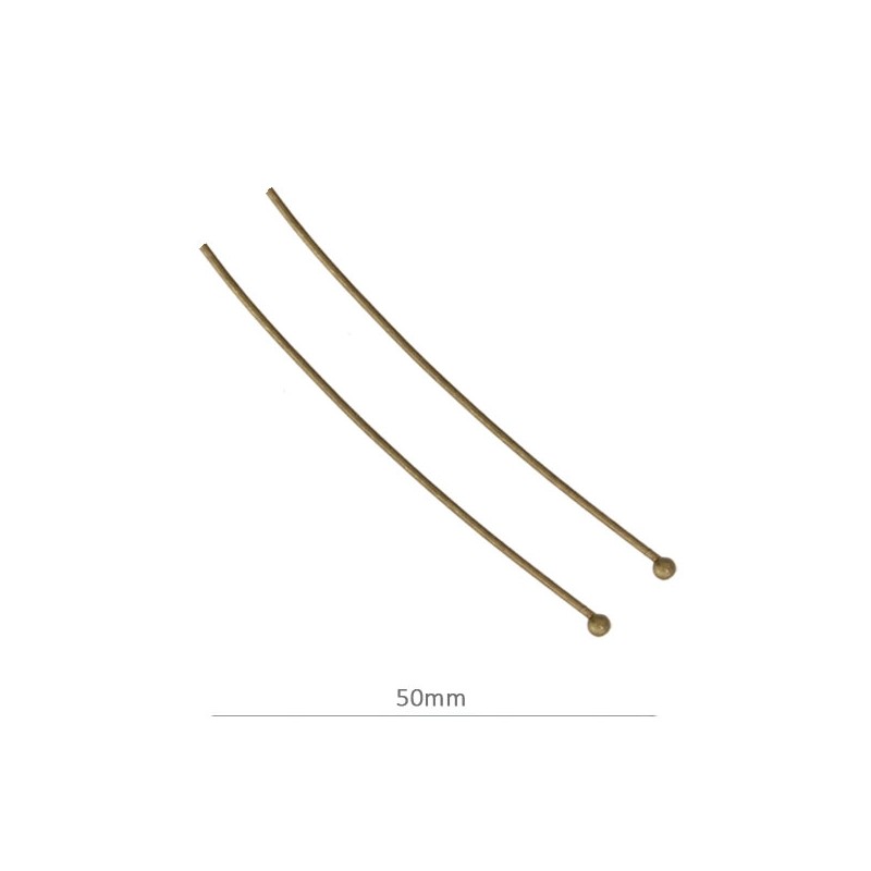 - Épingle avec boule de laiton de couleur or ancien. - La taille est de 50 millimètres. - Le prix est par sac et le sac contient 25 unités.