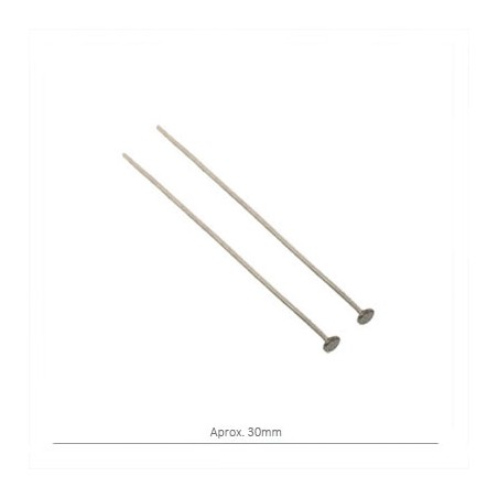 - Épingle avec butée plate en laiton en vieil argent. - La taille est d’environ 30 millimètres et le dessus est de 3 millimètres. - Le sac contient 50 unités.