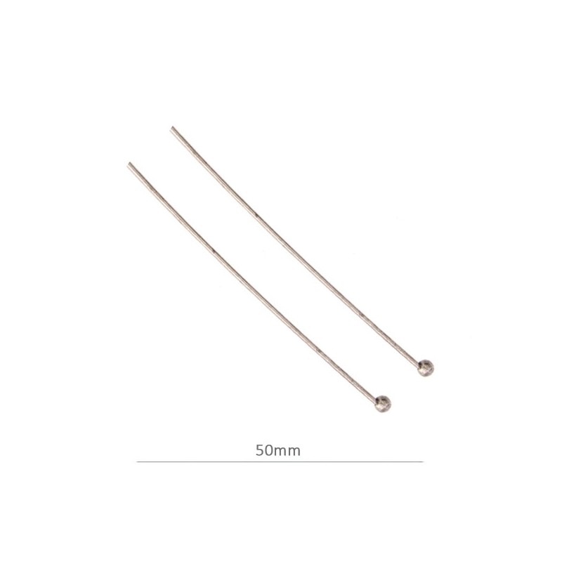 - Épingle avec boule de laiton de couleur argent ancienne. - La taille est de 50 millimètres. - Le prix est par sac et le sac contient 25 unités.