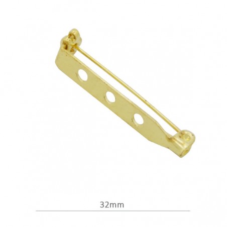 Base plate incontournable de 3 trous avec fermoir de sécurité en laiton de couleur or. Le sac contient 10 unités et la taille est de 32mm.