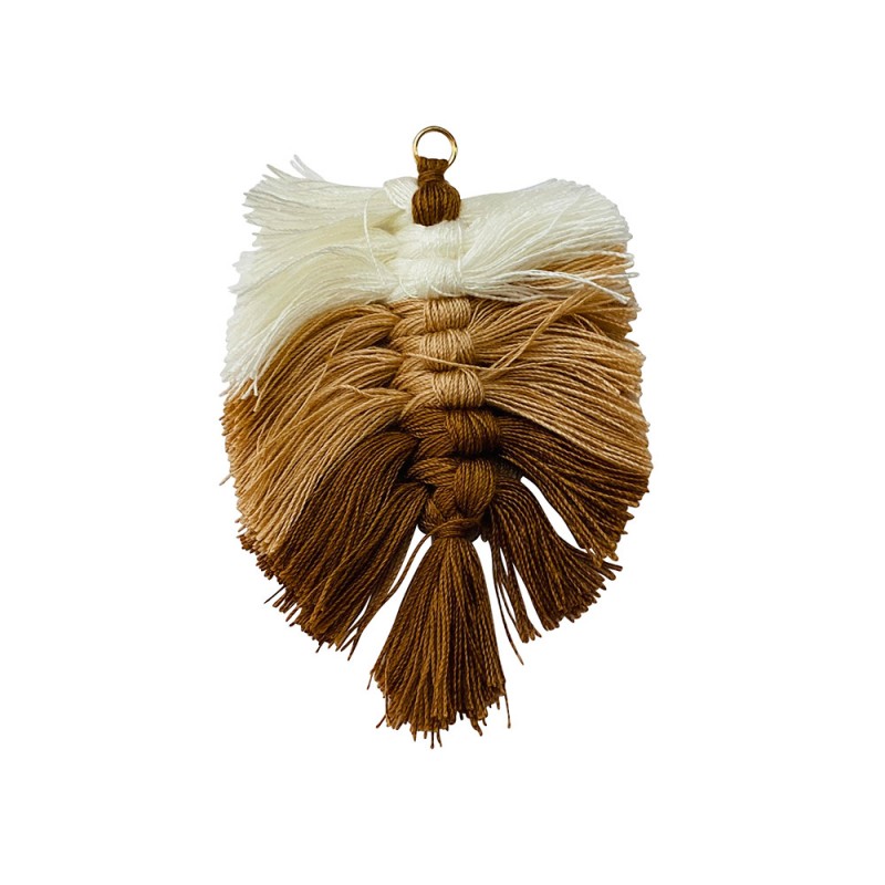 - Borla monstera de couleur marron dégradé avec bague plaquée or intégrée dans le gland.
