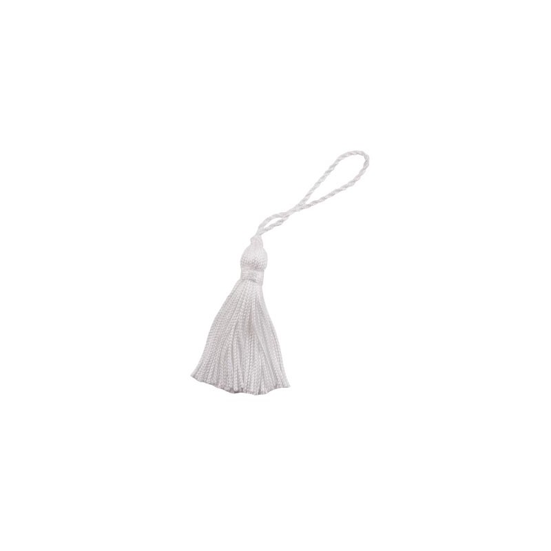 Pompon satiné en blanc. Le sac contient 1 unité et la taille du gland est de 5 mm.