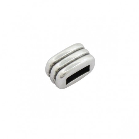 - Épingle interpiece trois bandes de zamac avec argenté. - Perceuse intérieure pour bande plate de 5 millimètres. - Le prix est par sac et le sac contient 2 unités.