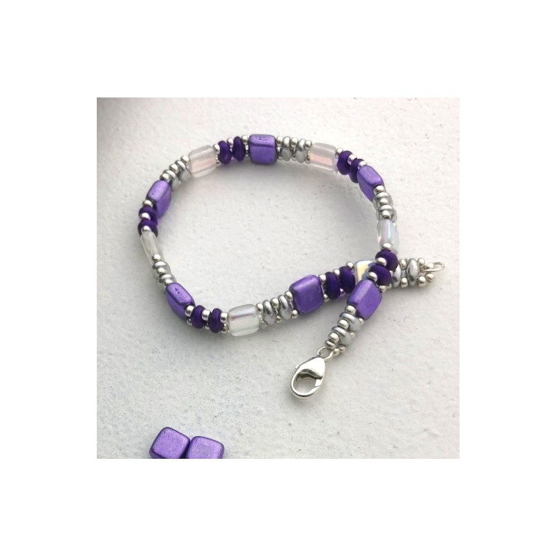 Profitez de la création de votre propre bracelet avec des tons violets avec des perles carrées, superduo et rockerie! Vous voudrez le porter en toutes occasions :)
