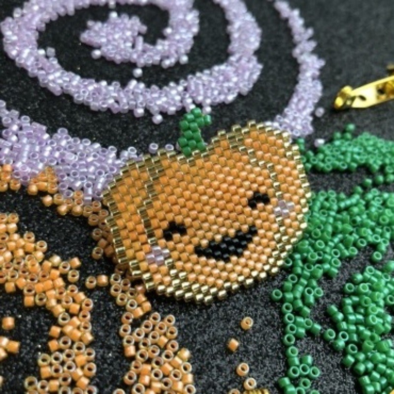 Profitez de la création de la citrouille d’Halloween fermoir avec les perles de delica de Miyuki. La technique utilisée pour fabriquer ce pendentif est le point de brique.