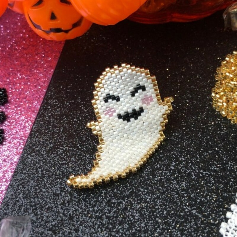 Profitez de la création de la fermoir fantôme avec les perles de delica de Miyuki. La technique utilisée pour fabriquer ce pendentif est le point de brique.