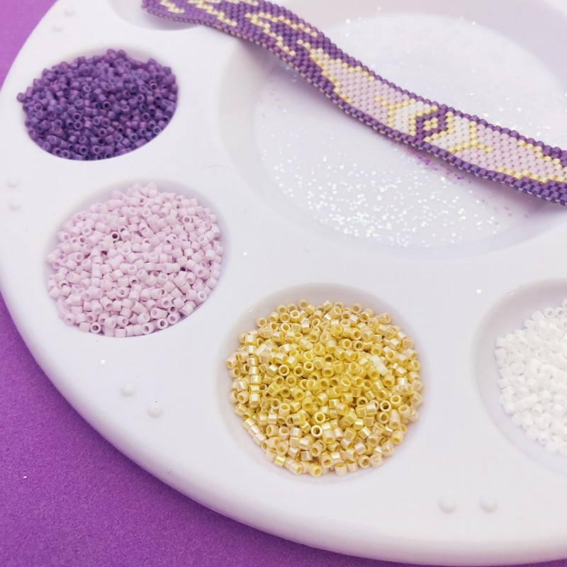 Profitez de la création de votre propre bracelet ethnique violet avec des perles Delica Miyuki dans des tons violets et dorés.