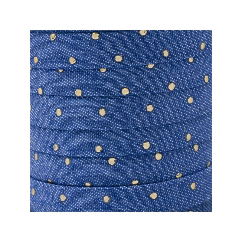 Ruban en denim de 10 mm. Taupes bleues et dorées.