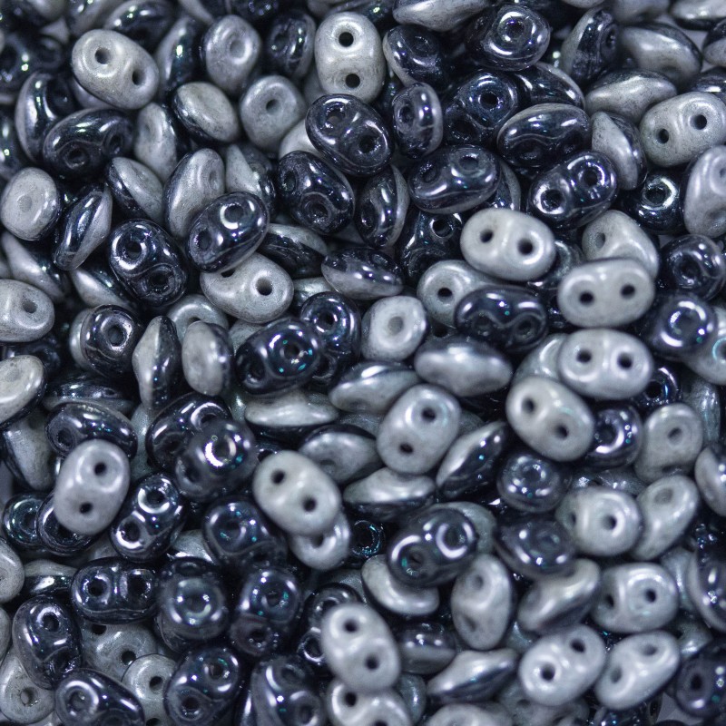 Superduo 2,5 X 5 mm. Lustre gris / noir