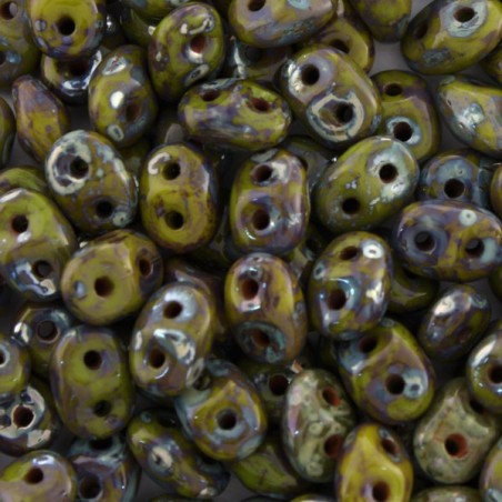Superduo 2.5x5 mm. Opaque Vert Picasso