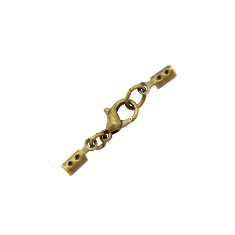 Mousqueton avec deux bornes d’agrafes en laiton de couleur or ancienne. Le sac contient 4 unités.