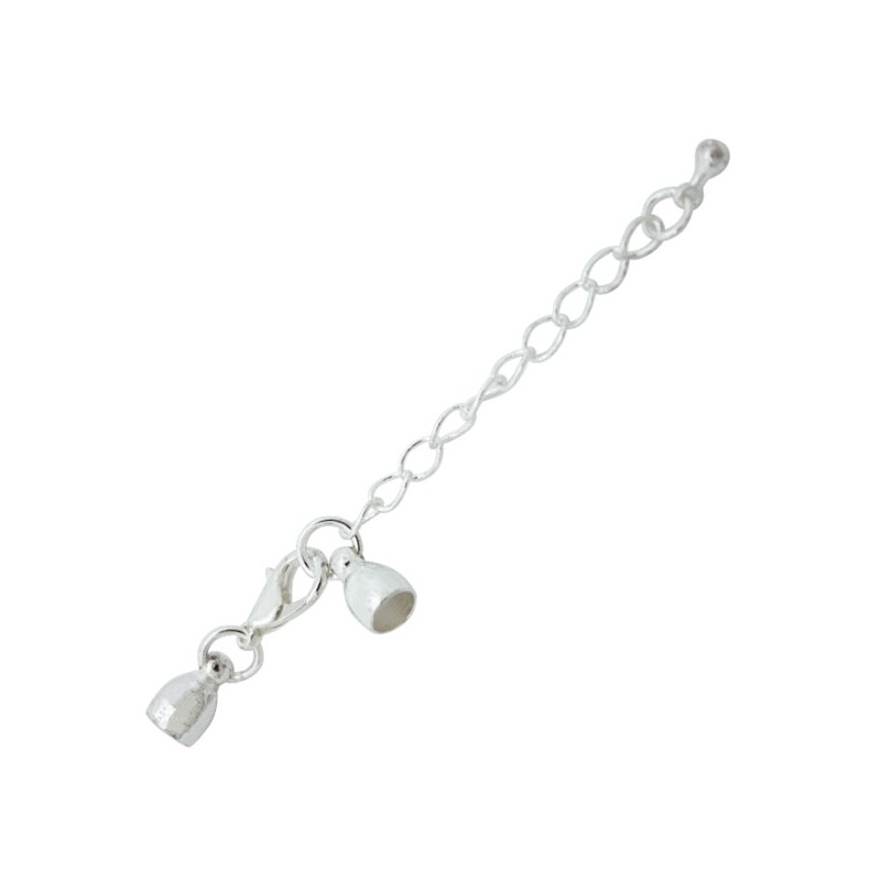 Mousqueton avec caireles et rallonge en laiton de couleur argent. Le sac contient 1 unité et est pour un cordon de 4 mm.