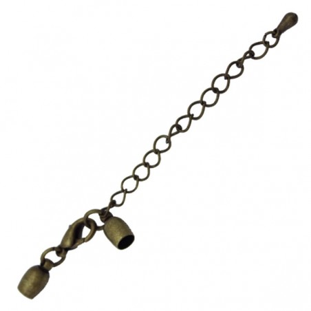 Mousqueton avec caireles et rallonge en laiton de couleur or ancien Le sac contient 1 unité et est pour un cordon de 4 mm.