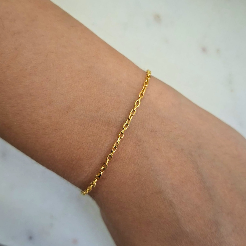 Chaîne forgée de 2,7 mm x 1,8 mm et fil de 0,6 mm. Acier inoxydable doré
